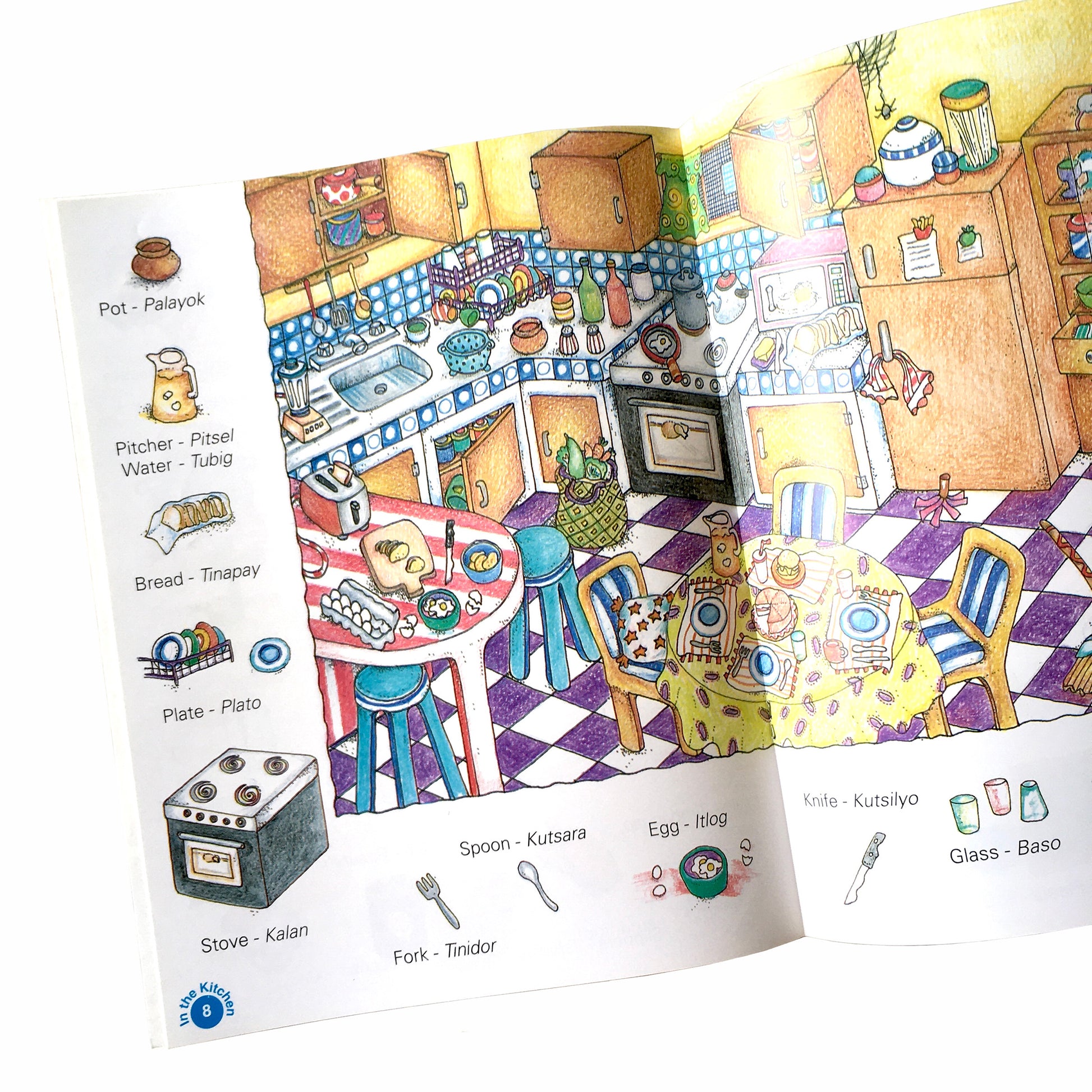 Enrich your child’s early reading skills with this delightful picture dictionary specially designed for bilingual kids. Garcellano’s warm and inviting pictures offer the very young a delightful smorgasbord of familiar objects.